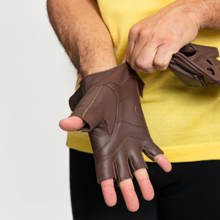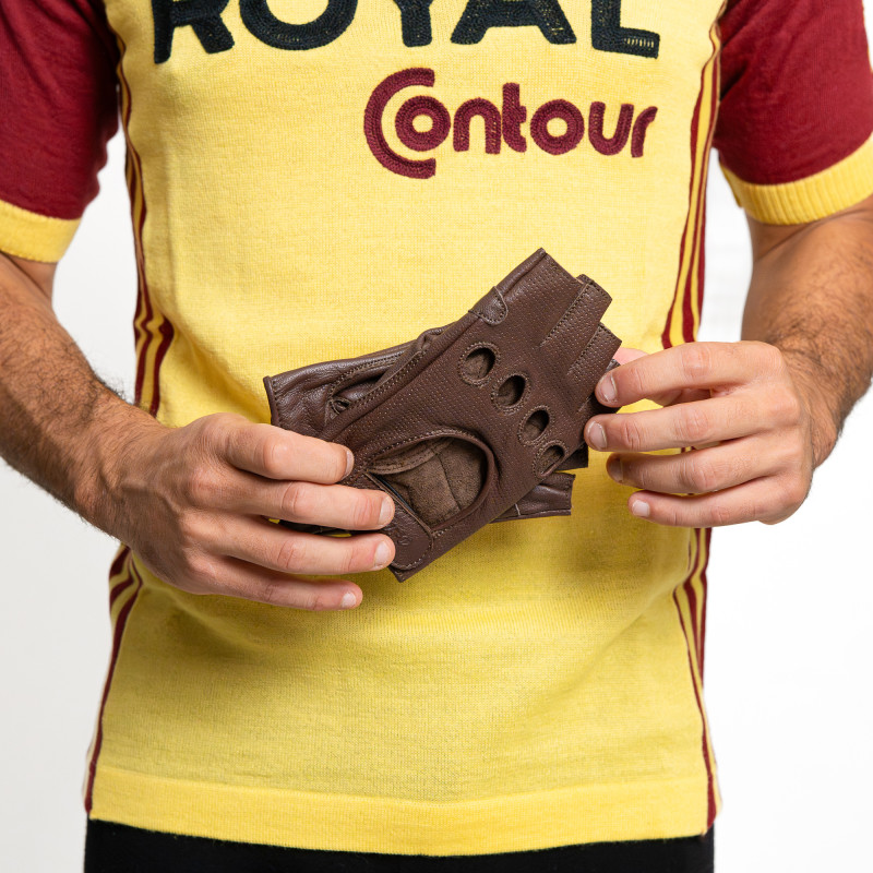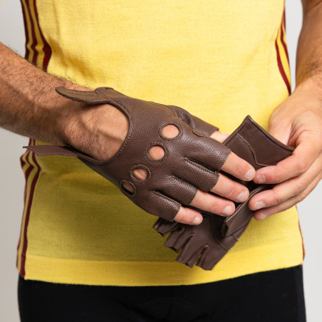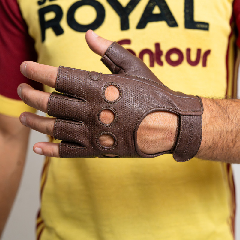 Vintage summer cycling gloves in 100% leather, Chocolate